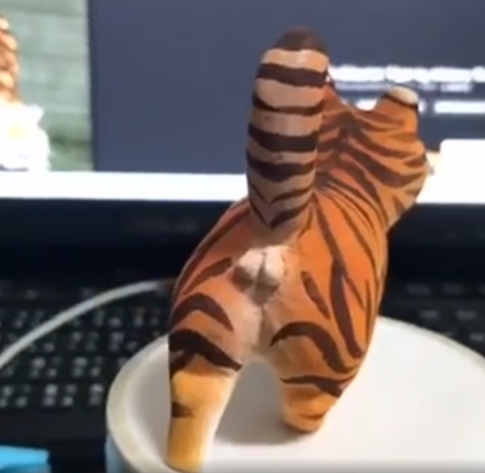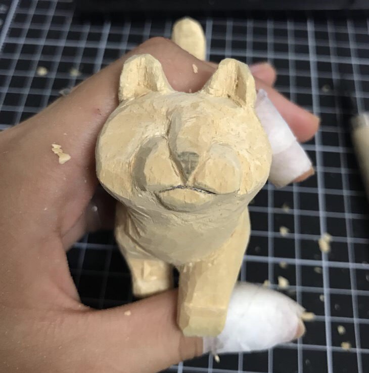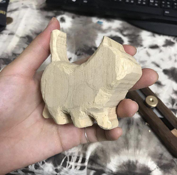 《Dcard》上PO出她的手作過程和成品,表示因為男友屬老虎,所以才決定雕一隻小老虎給他。她先用150元向某工作室訂了一個「走路貓」的木材準備將它改造成老虎,接著用雕刻刀和砂紙慢慢地修飾木材外型,過程中要不斷地用鉛筆標記臉部細節,避免雕得太起勁而雕過頭。