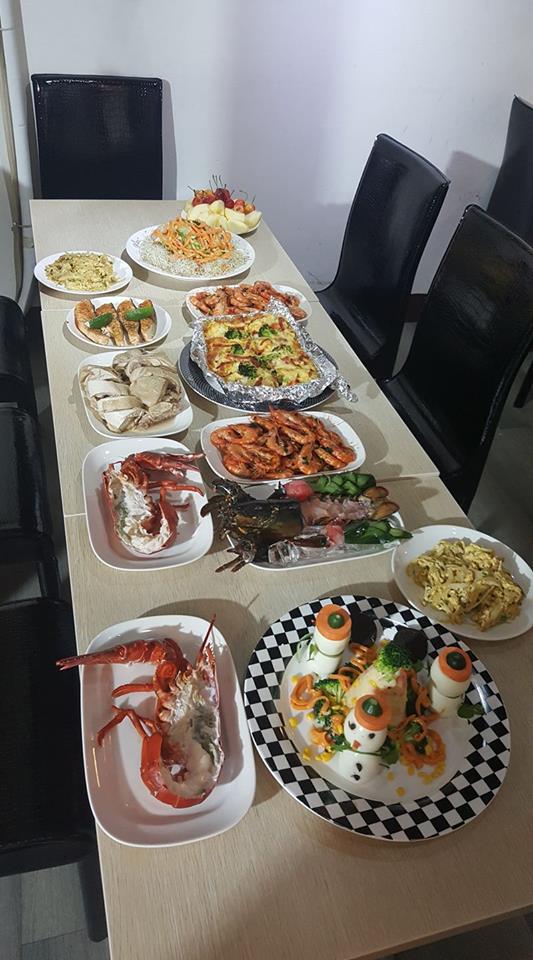 想不到照片一貼出來,網友一看都瘋掉了,長桌上擺著滿滿的10幾道菜,還有一盤尖尖的水果,其中包含冷盤、焗烤、鮮蝦、煎魚、雞肉等等,更誇張的是還有生魚片跟