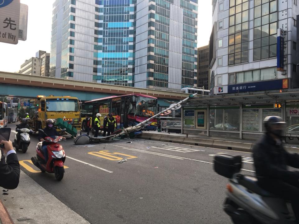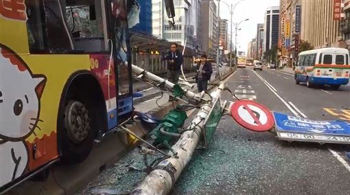 ▼東南客運棕10公車撞上交通號誌(圖/東森新聞)