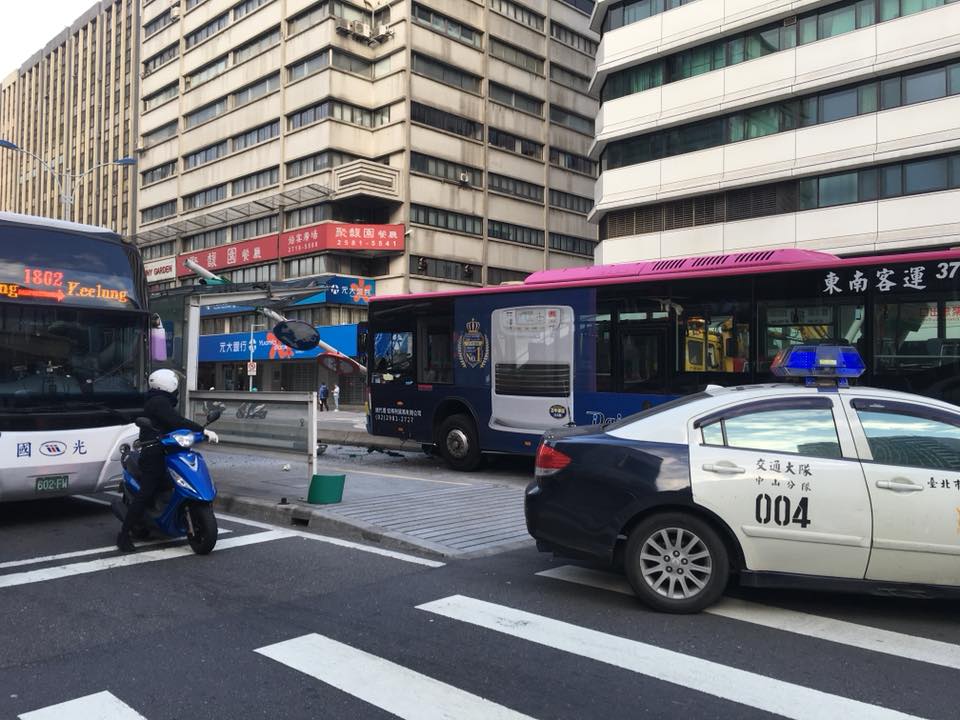 北市南京東路三段、復興北路口,今(27日)早上7點多發生一起公車車禍,一輛東南客運棕10公車撞上