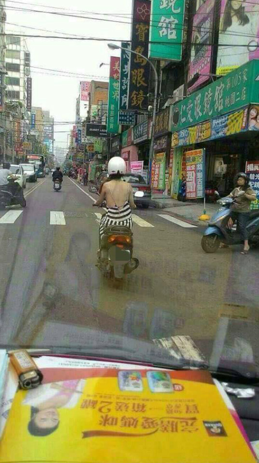 正妹騎士,被網友直擊穿露背裝在路上騎車,大秀白皙美背,讓人眼睛一亮的是,騎士居然沒穿胸罩,左半球整個一覽無遺快走光,照片一出後,立刻引發網友議論!
