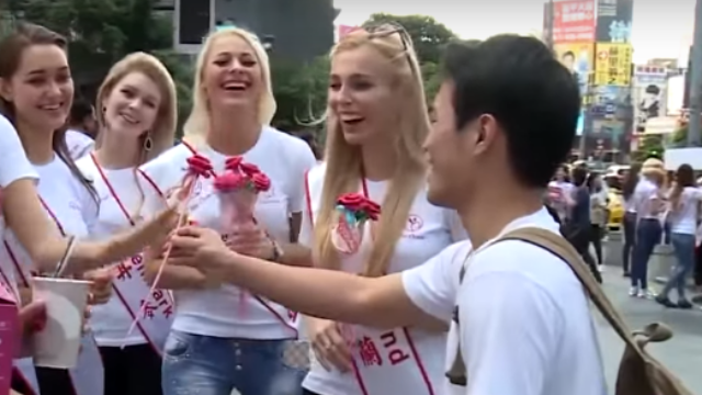 桃園中壢街頭出現好幾位長腿金髮碧眼的正妹,吸引路人多看好幾眼,她們拿起募款箱到底要做什麼呢?
