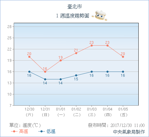 ▼一週溫度趨勢圖(圖/中央氣象局)