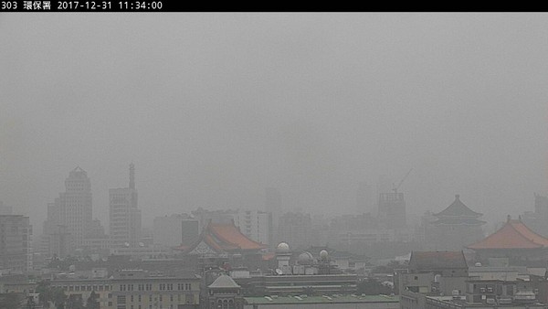雖然今日是跨年夜,可惜天公不配合,空氣品質可能為3年最嚴重的,民眾外出千萬不可輕忽。環保署大樓今日上午11時的即時空污影像可見,原本應在照片左方的101大樓,被一片霧茫茫擋住「完全消失」。環保署也提醒,期待煙火的民眾,晚上觀賞時盡量避開下風處,避免受到更多的空污危害。