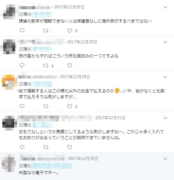網友看到後紛紛表示覺得疑惑「我覺得他們即使沒有照片,也可以自己付錢」、「日本的硬幣很容易區分」、「硬幣分不清楚的人,應該要有爸媽陪伴才能出國」、「好奇怪的待客方式」、「當我第一次看到它的時候,我覺得『我很笨』」,但也有人承認自己認識的人「即使上面寫著數字,但還是無法辨識日圓」,另有網友認為是因為「大陸都用電子支付的關係」。