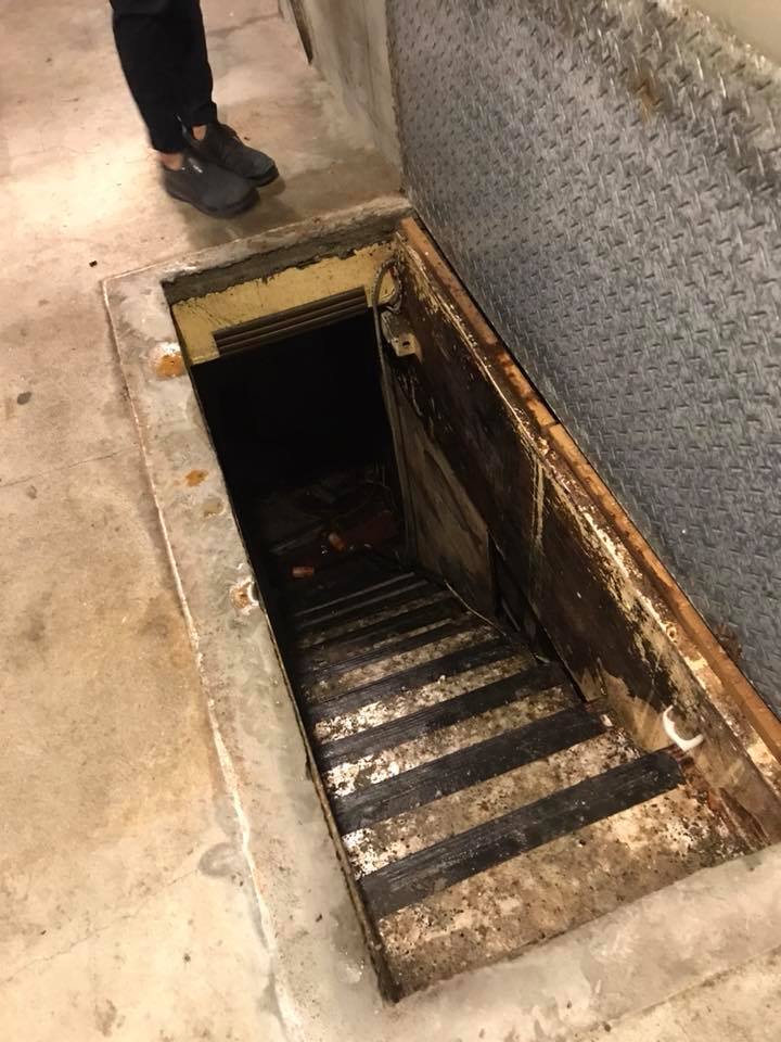 一名女網友在臉書社團《爆廢公社》發文表示,「誰要來探險…跪求勇士來西門幫我探險,我真的不敢下去!」只見照片中,這間店面的邊角處藏了一個通往地下的樓梯,裡面看起來黑暗又髒亂潮濕,可見已經很久沒人去接觸,詭異又神祕的樣子,讓人腦中不禁浮現恐怖片情節。