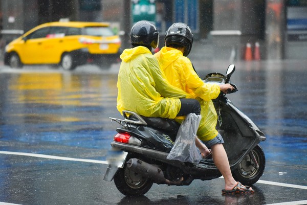 寒流氣溫,妹子「沒下雨」仍穿雨騎車,害羞問:「這樣很蠢嗎」。(圖/李毓康記者攝)