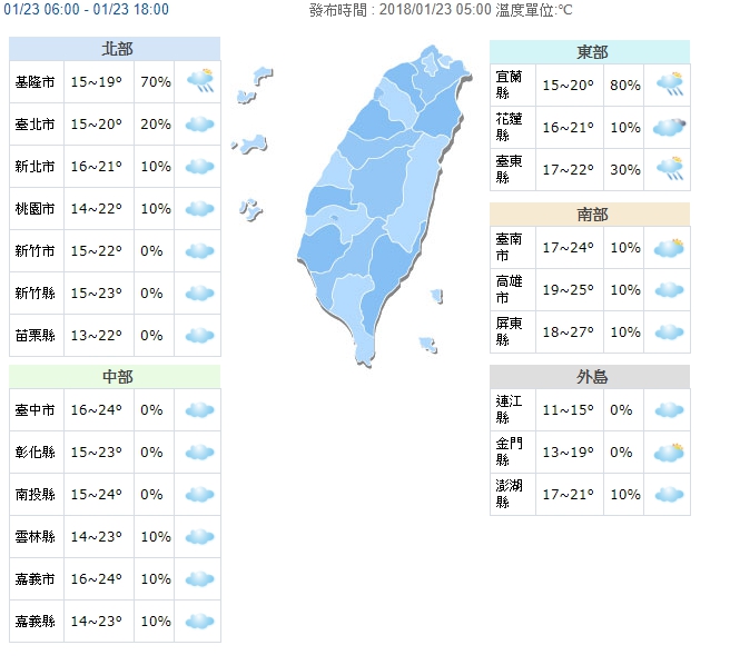 而今天(23日)下午起,東北季風便會開始增強,晚上東半部、北部會有局部降雨,其他地區則是多雲可見陽光,一直到周四東北季風才會稍微減弱,但周五到周六又會有另一波冷氣團報到,天氣再度轉涼。