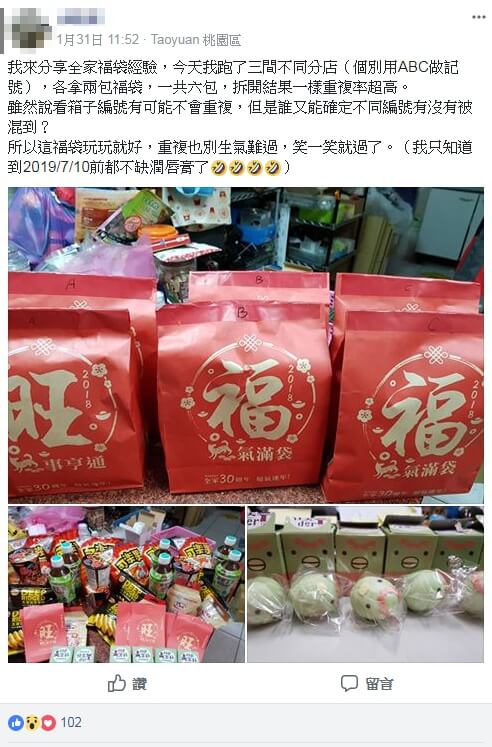 驚喜包。不過有網友連跑三家分店,買了6個福袋,回家一拆,竟發現