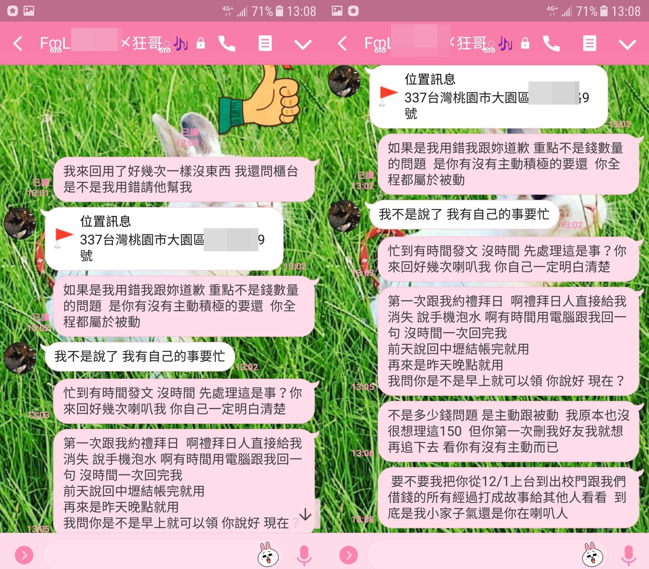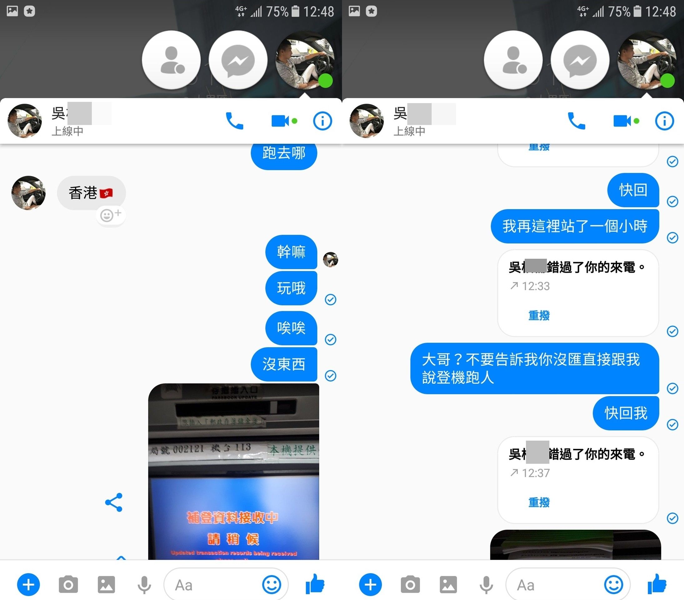 兩人加回臉書好友,男子約好見面又失蹤、臉書訊息密了不回、LINE故意不讀,後來說要匯錢,稱匯好了要去確認,又說他要出國了、要忙了掰掰,結果帳戶根本就沒有錢匯入;他還被發現在台南釣蝦,又說岳母出車禍,翌日卻又在台灣的餐廳打卡。由於男子態度不停反覆,稱自己很忙沒有時間、手機壞掉等等,讓原PO超級傻眼:「看一下臉書發現這位帥哥又刪我好友,Line的訊息也不讀不回,不知道是被4億元淹死了嗎?小弟現在上來爆料找看看他有沒有在這裡~」