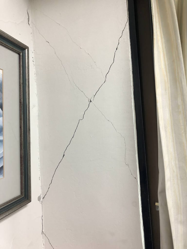 ▼網友公司靠窗的牆面已裂成X型(圖/翻攝PTT)