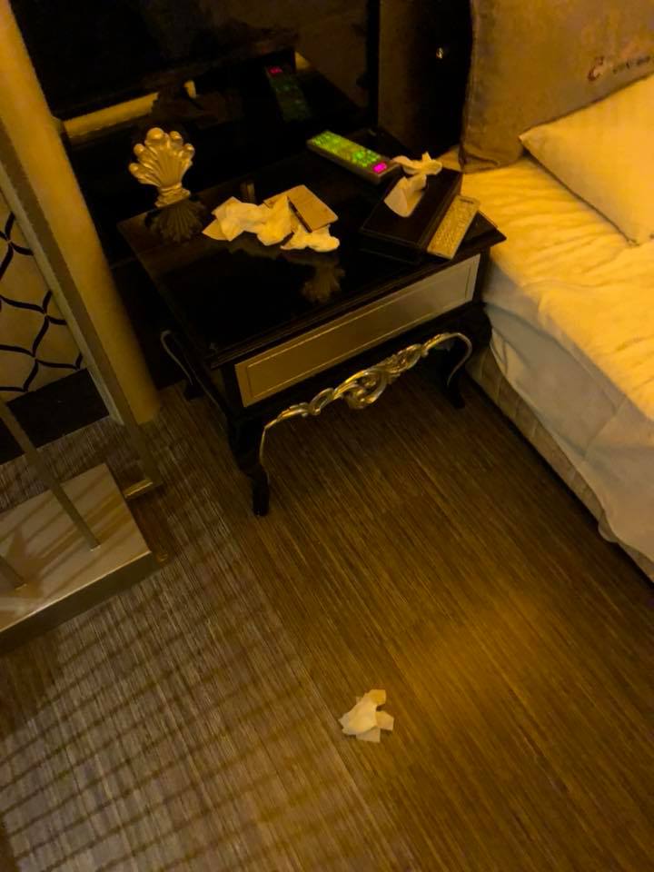 訂房,當天下午還有接到服務人員來電確認入房時間,但晚上抵達現場後,服務人員卻用很差的口氣說:「沒有資料」,原PO當下只好拿出訂房系統的確認信件作證,櫃檯才給了他一間房間,但他萬萬沒想到,「一進去看到的是別人大戰過後的樣子…」讓他氣得馬上跟櫃檯反應,對方卻說晚點會請人過去打掃,讓原PO相當傻眼。