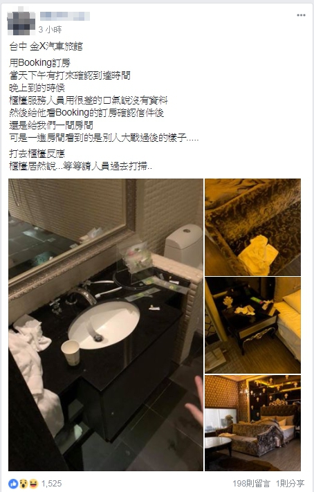 汽車旅館休息溫存一番,但房門一打開映入眼簾的卻是被別人「炮火轟炸」過後的房間,讓原PO的心情宛如像在燙紅的熱鐵上淋了一桶冷水,慾火瞬間全被澆熄,然而致電櫃檯得到的回應卻又點燃他的怒火,氣得拍照上網爆料。