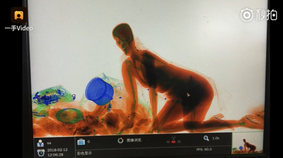 安檢機,防止違禁品被帶入、出境內。不過大陸有名女子,她深怕包包內的財物遺失,竟跟著包包闖進安檢機內,結果顯示器穿透厚厚的衣服照出肉體,甚至連骨骼都看得一清二楚,讓安檢人員都忍不住偷笑。