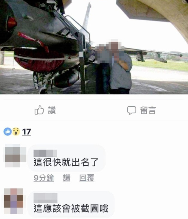 誇張的是,照片裡的辣妹和友人除了站在F-16前合影外,辣妹還闖進駕駛艙內,一屁股坐下朝拍攝鏡頭做出「啾咪」的姿勢,引起網友一陣輿論撻伐,「能坐到座艙內就有爭議了歐」、「這很快就出名了」、「這應該會被截圖哦」。