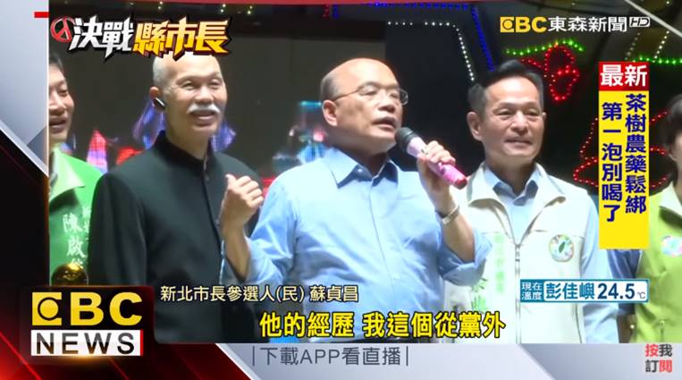 兩人匆匆握了手,蘇貞昌滿臉笑容侯友宜則是滿口的加油。一個正到場,一個正要走。一場席開百桌的新北青果商業同業公會聯誼餐會,正是侯蘇雙方互別苗頭的機會。