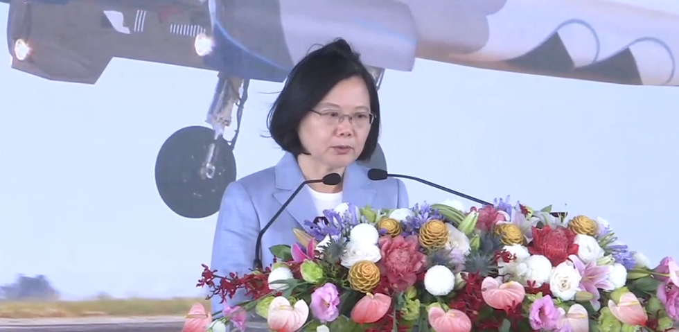 蔡英文主持開架儀式,並在油箱上簽名見證,完成歷史性的一刻,而漢翔公司董事長廖榮鑫表示,再過760天,國機國造的