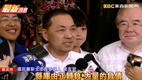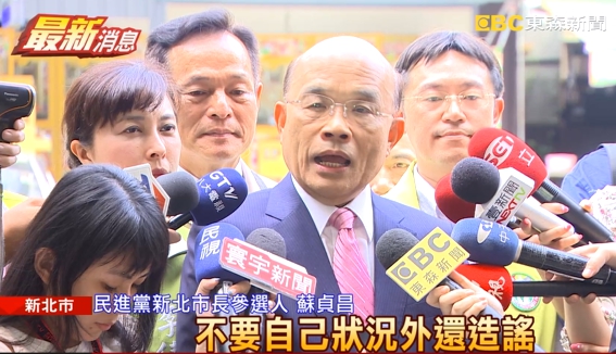 民進黨新北市長參選人蘇貞昌:「不要自己狀況外還造謠,搞錯數字開始亂講,國民黨選舉不外買票跟造謠抹黑,現在造謠開始了我很遺憾,希望侯友宜懸崖勒馬。」國民黨新北市長參選人侯友宜:「老縣長不要轉移焦點,在他(蘇貞昌)任內,縣庫由正轉負大量的負債,這是不爭事實,更何況老縣長把台北縣跟新北市政府的預算都搞錯了。
