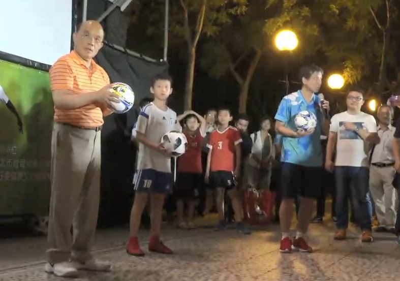 民進黨新北市長參選人蘇貞昌:「勾起來,勾起來,差一點點。」初嘗試沒成功,蘇昌貞再try一次,把足球停在腳背跟小腿間,還能大字展開。挑戰更高的難度,蘇貞昌模仿教練動作,把球放在胸前,反覆計算時間差,用大腿抬起足球。民進黨新北市長參選人蘇貞昌:「足球並不是很內行,昨天剛好有足球達人來教,花式足球很好玩,我也試試看專業的東西,真的是要長期努力,就像當市長一樣。」