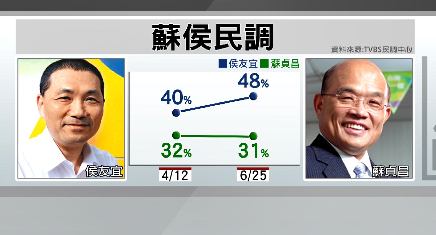 根據TVBS的最新民調,4月時,侯蘇兩人民調是40%比上32%,相差了8個百分點,但在文大事件後,侯友宜民調漲了8%,蘇貞昌小跌1%。新北市長參選人侯友宜:「尖酸刻薄、惡意抹黑的選戰做法,選民是厭惡的。」新北市長參選人蘇貞昌:「其他的好像完全不一樣,這段期間這個走勢不是這樣的。」
