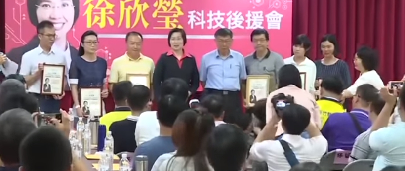 徐欣瑩站台,徐欣瑩邀請到數百位科技業的支持者共同造勢,喊出要終結派系跟藍綠惡鬥,而柯P則是針對敬老金風波表示,自己是推廣老人服務被抹黑。