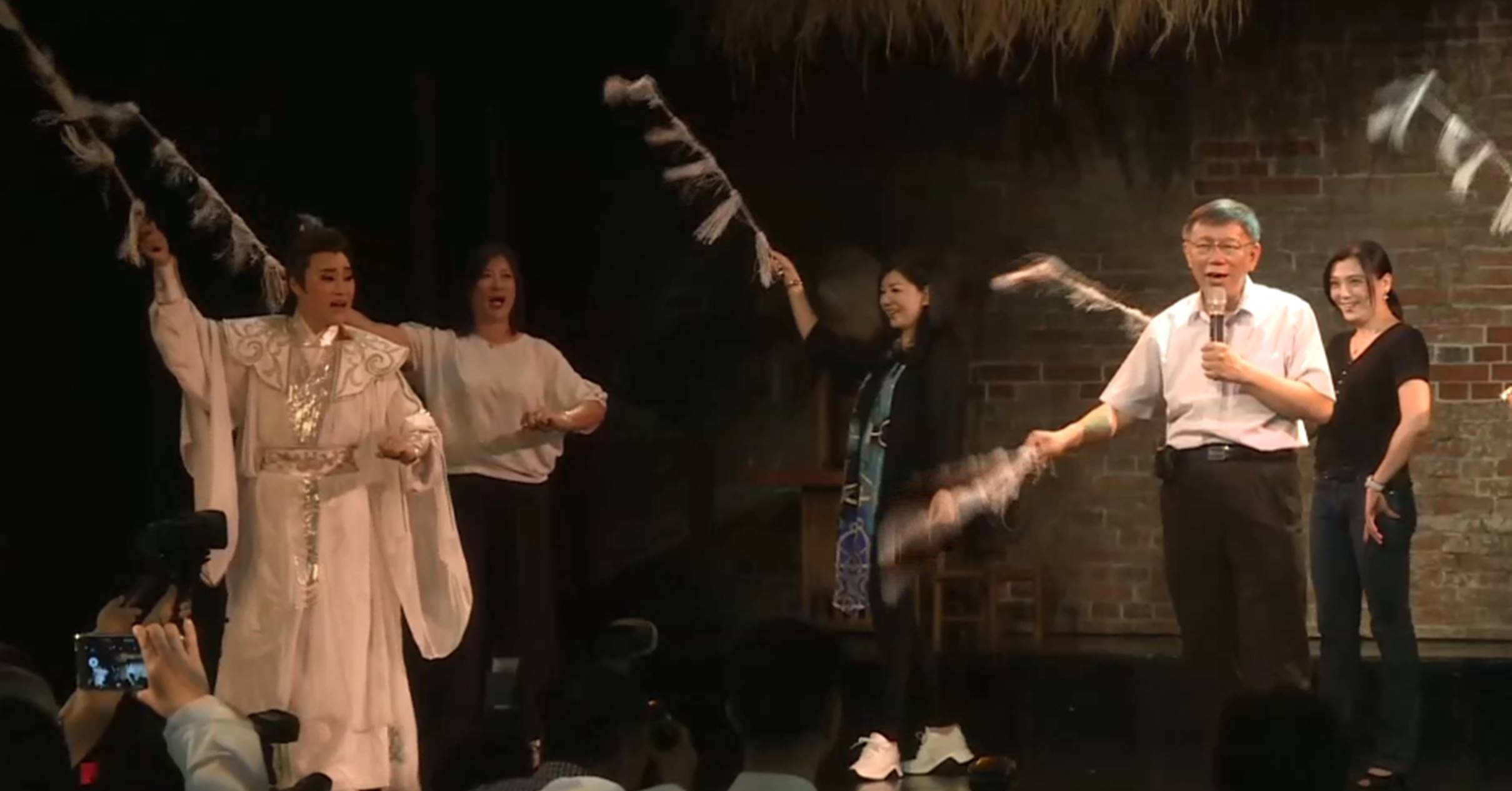 柯文哲手拿麥克風,欲罷不能,不只暢談政治理念,還忍不住分享施政經驗,幾乎跨足多個領域。觀看歌仔戲,陳亞蘭還親自指導,讓市長來一段經典戲,