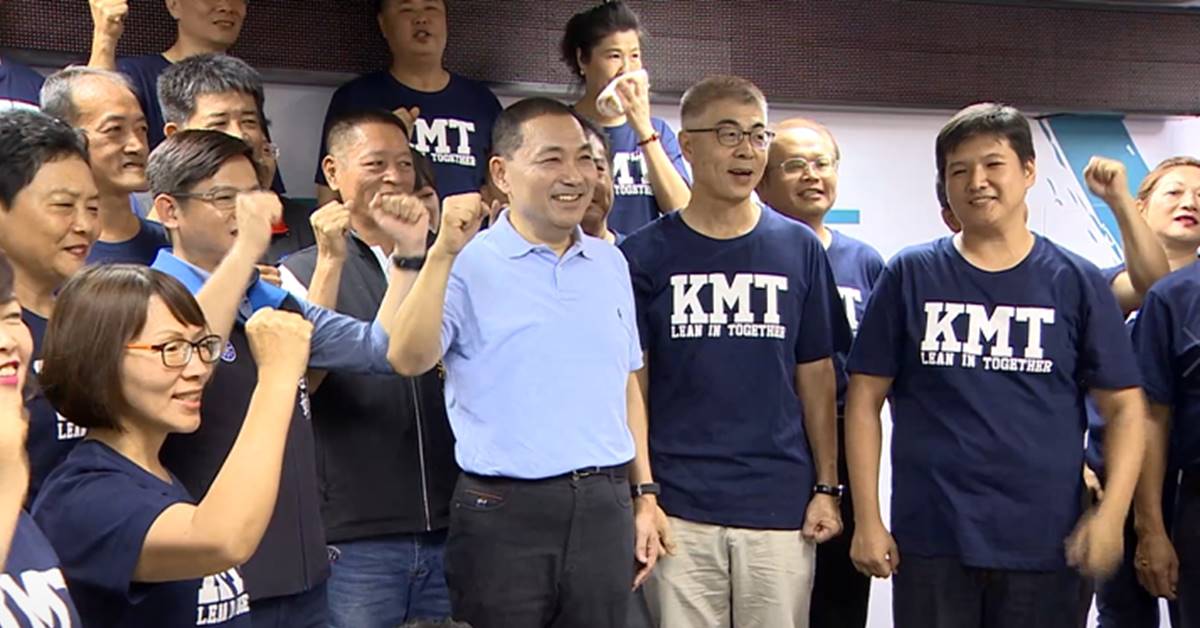 喊聲一致、服裝也整齊,里長們穿上深藍戰袍拍宣傳照,侯友宜還是招牌的淺藍色POLO衫,KMT潮T侯友宜只在黨中央活動穿過1回,當時還馬上換掉。國民黨新北市長參選人侯友宜:「我穿圓領的就不好看,最重要是因為,昨天已經穿這個POLO衫(拍照),跟我們里長都是一致性的拍法。」而根據最新的媒體