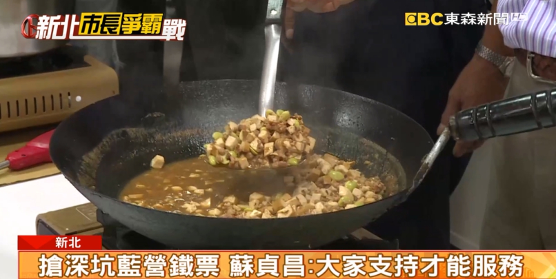 深坑被視為藍營鐵票區,蘇貞昌積極走訪,希望用最真誠的姿態,感動深坑民眾,不只在老街直播,訪問中也不忘繼續推銷美食。