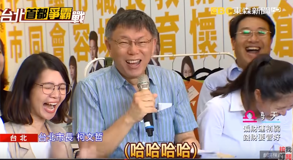 台北市長柯文哲:「你們那個辨識度太低了,這樣不行,雖然這是你的場子,但我順便來宣導一下我的政績。」