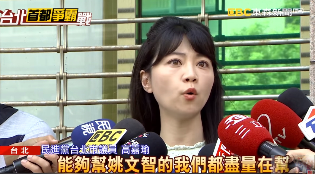 民進黨台北市議員高嘉瑜:「我覺得姚文智發言人的說法,不一定是代表姚文智本人真正的想法,能夠幫姚文智的我們都盡量在幫。」