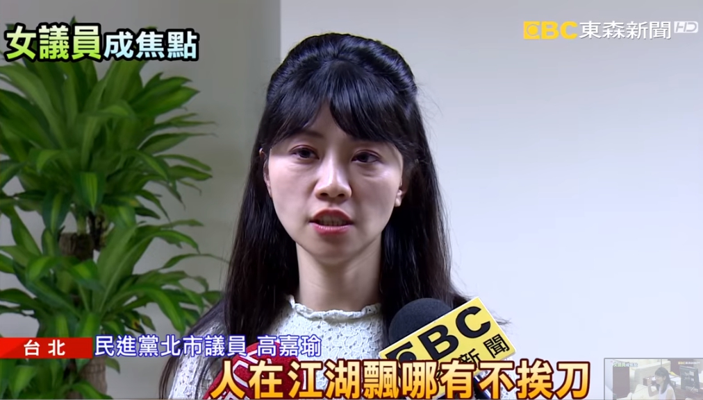 民進黨北市議員高嘉瑜:「人在江湖飄哪有不挨刀,就是各式各樣的見縫插針,然後背後插刀真的也是蠻多。」