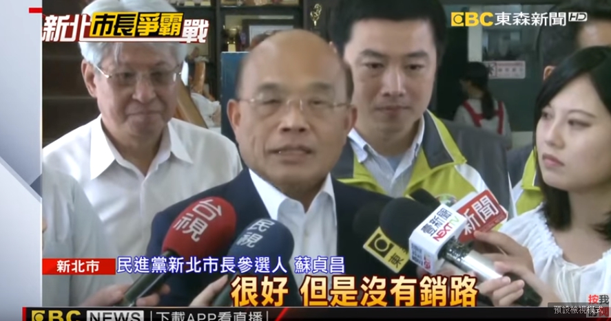 民進黨新北市長參選人蘇貞昌:「過去的民調也曾經在4年前選舉時候說,鄭文燦啦!林智堅啦!游錫堃院長啦!都輸對手一半以上,事後證明跟事實差距太遠了,所以我們參考。」