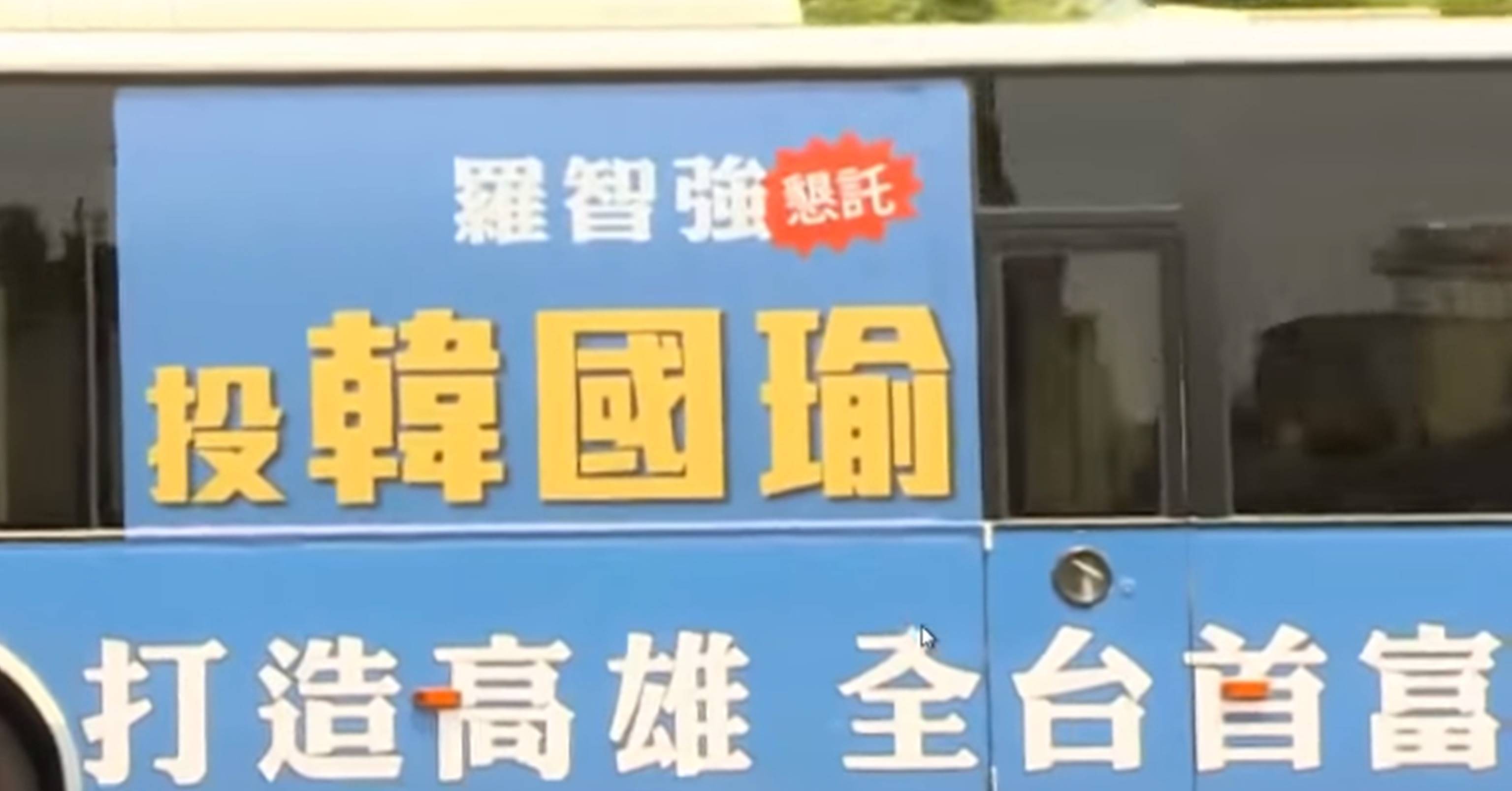 一上公車就和鄉親,一一握手道好,韓國瑜戴著墨鏡,不只帥氣十足,親和力更是他的強項。國民黨高雄市長參選人韓國瑜:「前進高雄市政府,來,你坐你坐。」和市議員參選人一起搭公車,要前進高雄市府,只是看看這台公車,還真的不簡單。由台北市議員參選人羅智強發起的嗆聲公車,車上還有另一位北市議員參選人游淑慧,2人緊貼韓國瑜,一路上有說有笑,要讓北、高連線,母雞、小雞互相拉抬聲勢。