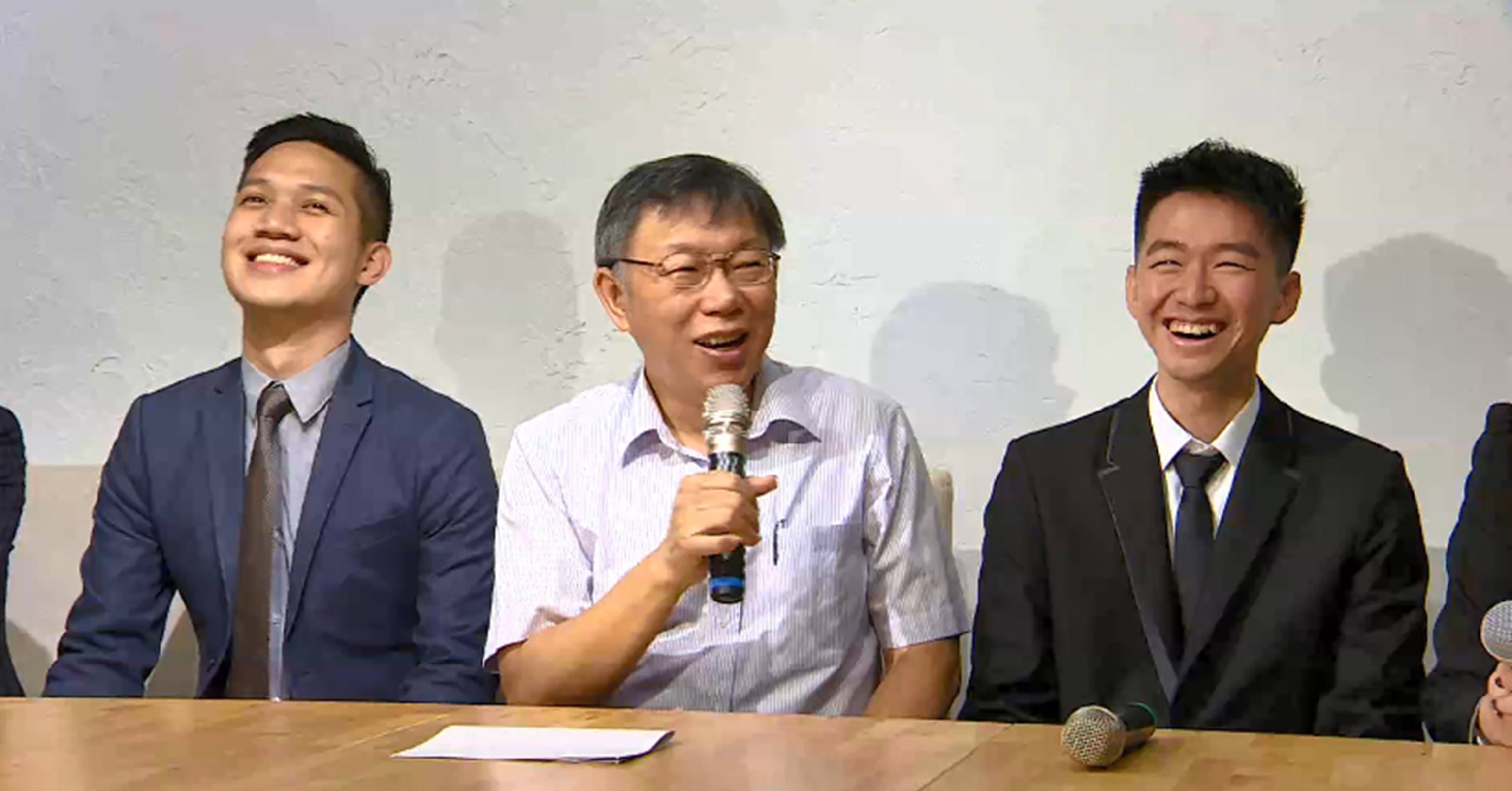 老闆一句肺腑之言,可嚇壞了年輕發言團隊,看看2位都是八年級生,81年次的楊笙台大醫學系畢業,還曾是柯P學生,而82年次的蔡峻維,則是政大中文系畢業,當過北市都發局的聘用員工,但懷抱理念加入新團隊,必須有所準備。柯文哲競選辦公室發言人蔡峻維:「當然會做好心理建設,然後不斷去調適它,我們長相應該就是,當然清秀囉,不會說自己帥。」