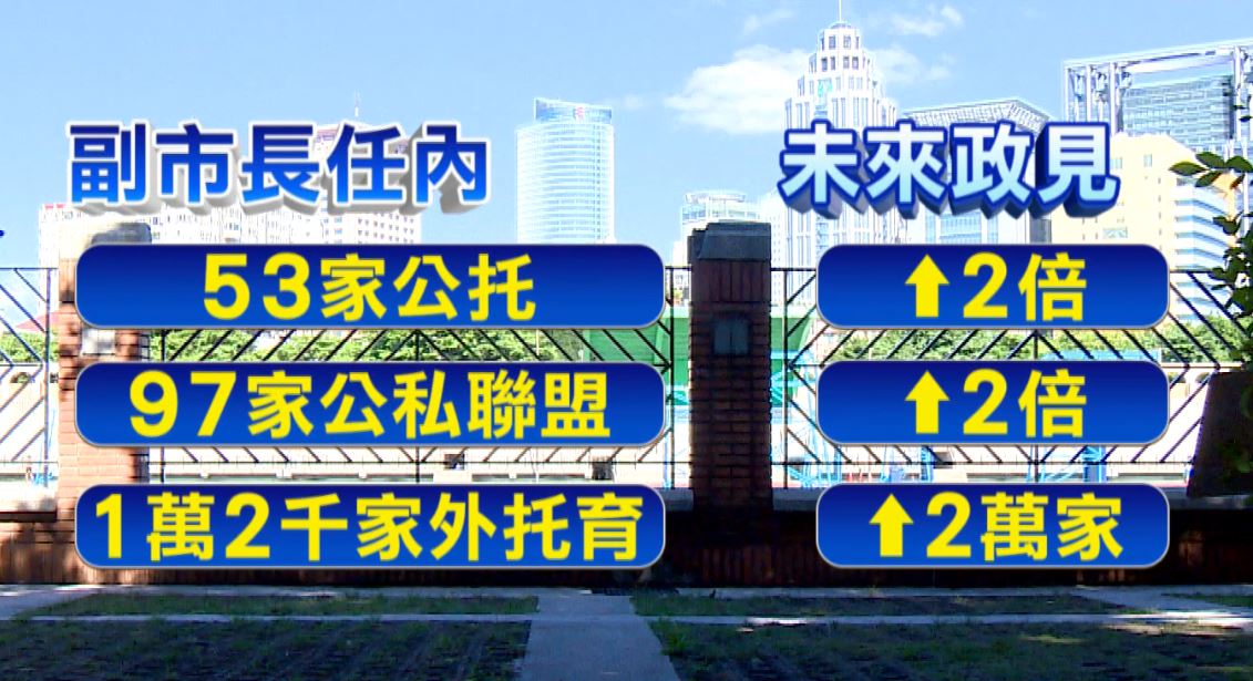 捷運步行到公托中心,10分鐘的路程,是侯友宜想要打造的友善環境。國民黨新北市長參選人侯友宜:「托育設在捷運附近,上班、下班回來的時候,就可以把小孩接走。」建置新公托首選,用走的就能抵達,侯友宜副市長任內有53家公托,公私立合作聯盟有97家,未來設定花4年要倍數成長,另外家外托育目標成長到2萬。國民黨新北市長參選人侯友宜:「好的聲音很多,但相對量不足也有很多聲音,所以一直覺得公共托育一定要趕4年,可以做8年的量,當然質的管理我比較有信心,除了慢慢用科技管理外,也慢慢成熟比較有經驗。」