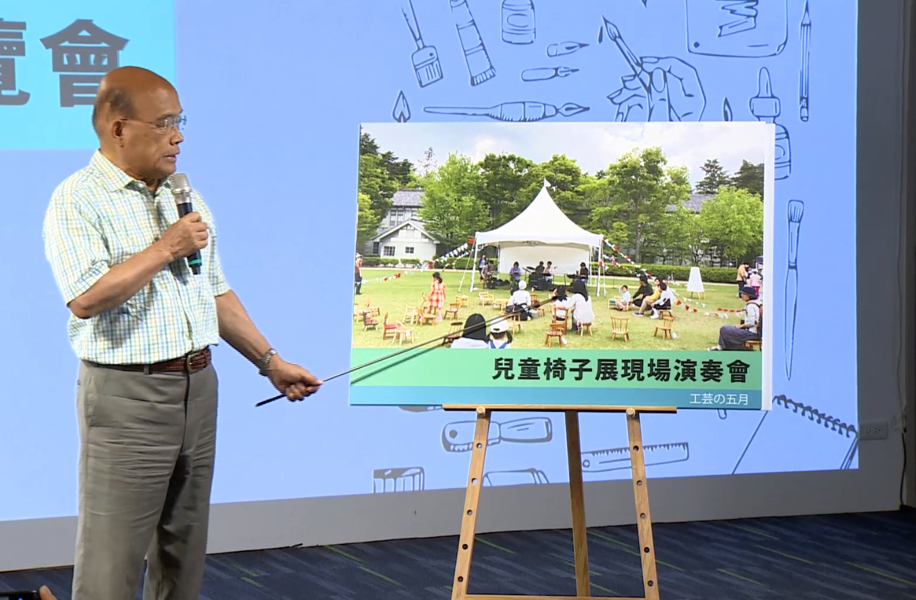 大片青綠草地上,搭配彩虹椅,還有旁邊木製圓形椅,最吸引小朋友目光,這是日本松本市的工藝五月展,不只在草原上,整個城市超過50個展區。