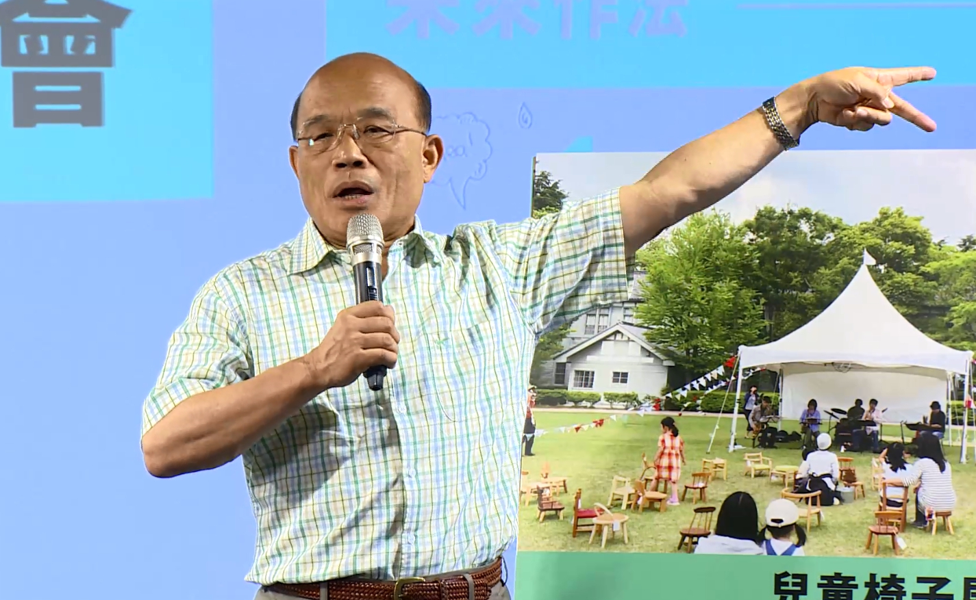 民進黨新北市長參選人蘇貞昌:「我一再的提出非常具體、可行有創意的政見,不是只有躲在後面不敢見人,鬥嘴鼓這樣不好。」呼籲回歸政見對決,讓新北選戰少點口水是2人共通點。
