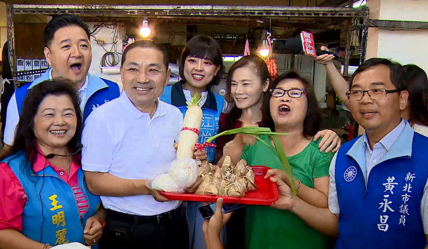 侯友宜則是到鶯歌掃街拜票,民眾看到他握手大喊凍蒜,而支持者甚至自發幫侯友宜自製第一輛