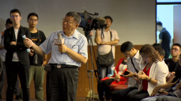 台北市長柯文哲南下高雄,體驗新科技,什麼誇張動作都來一遍,就連上台演講一直拿出舊哏,學生們仍超買單。拿5月的民調數據自嘲,擠爆大禮堂的南部學生們狂笑,柯式幽默席捲南台灣,柯文哲的人氣非常旺。台北市長柯文哲:「台北市政府門前貼這個春聯,『萬象更新,改變成真』,結果我的朋友你知道,他跟我說他站在市政府外面,他怎麼看 都看成政變成真。」