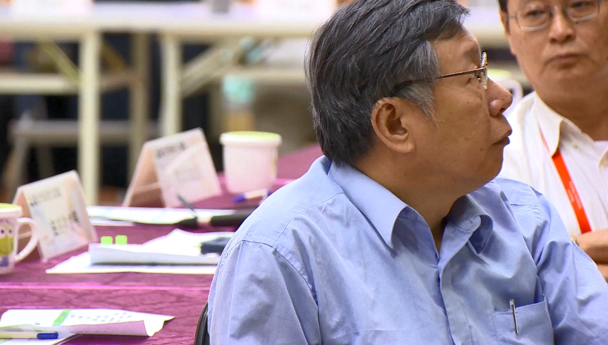 柯文哲晚間出席中山區的福德宮捐贈社區醫療巡迴車儀式,現場宛如粉絲見面會,他受到民眾熱烈的歡迎,而比他早到場的民進黨