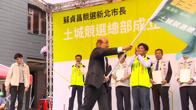 大旗一揮,宣告土城區競選總部正式開張,這回的選戰有別以往,蘇貞昌沒有一個大型競總,而是在各區插旗。民進黨新北市長參選人蘇貞昌:「競選辦公室我們都是從市民的角度來考量,讓市民的意見我們能很快聽見,同時讓我們的資料市民容易拿到。」能跟選民更親近,但場地就相對不寬敞,所以未來要辦大型造勢得用網路連線壯聲勢,蘇貞昌這個週末一口氣成立六個區總部,對手侯友宜也有動作。