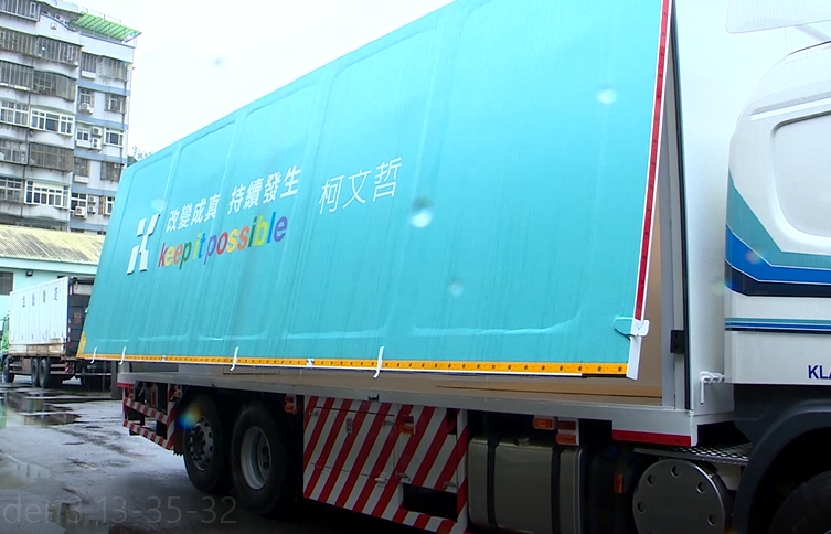 東森記者 張清俊:「柯P的行動競選總部,就是一台大貨車,車身除了一個大大的K字之外,大多是以白色為基底,來象徵他的白色力量。」