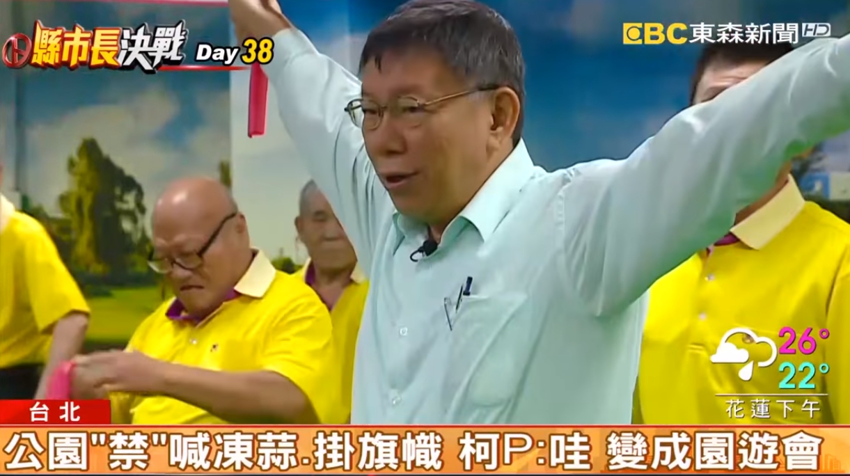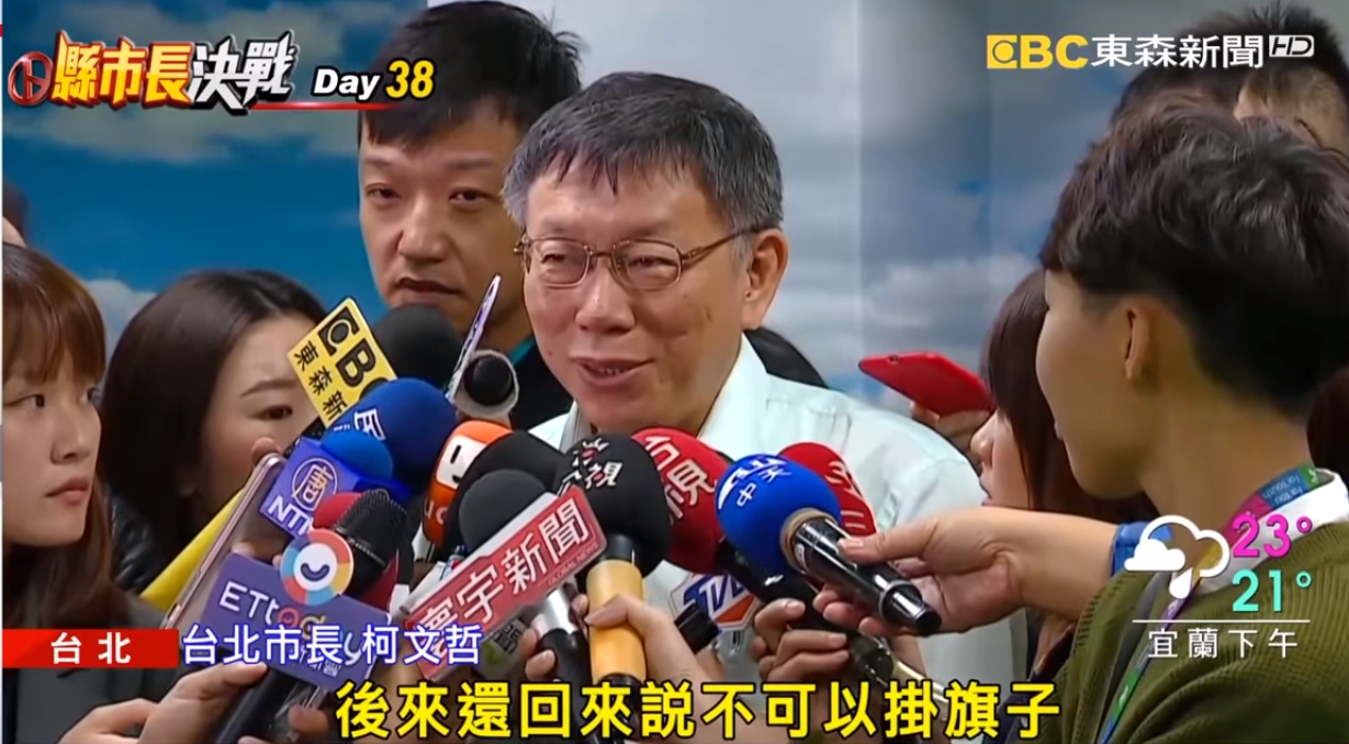 台北市長 柯文哲:算競選活動嗎?,問題是......,現在我們也有很多規矩啊,好像這禮拜要去北投公園,結果說公園不可以競選活動,後來還回來說不可以掛旗子,不可以喊凍蒜,什麼東西 哇 變成園遊會了,所以被姚文智說,因為他要在公園辦活動被拒絕,沒有啦,那個要遵守(公園使用)它的規範啦。