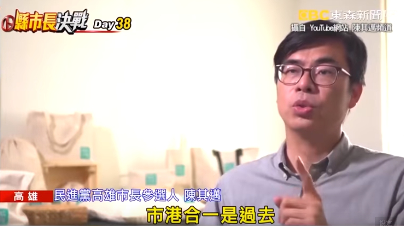 民進黨高雄市長參選人陳其邁:「市港合一是過去,所有歷任市長,都做不到的事情,也是高雄人共同的一個期盼。」