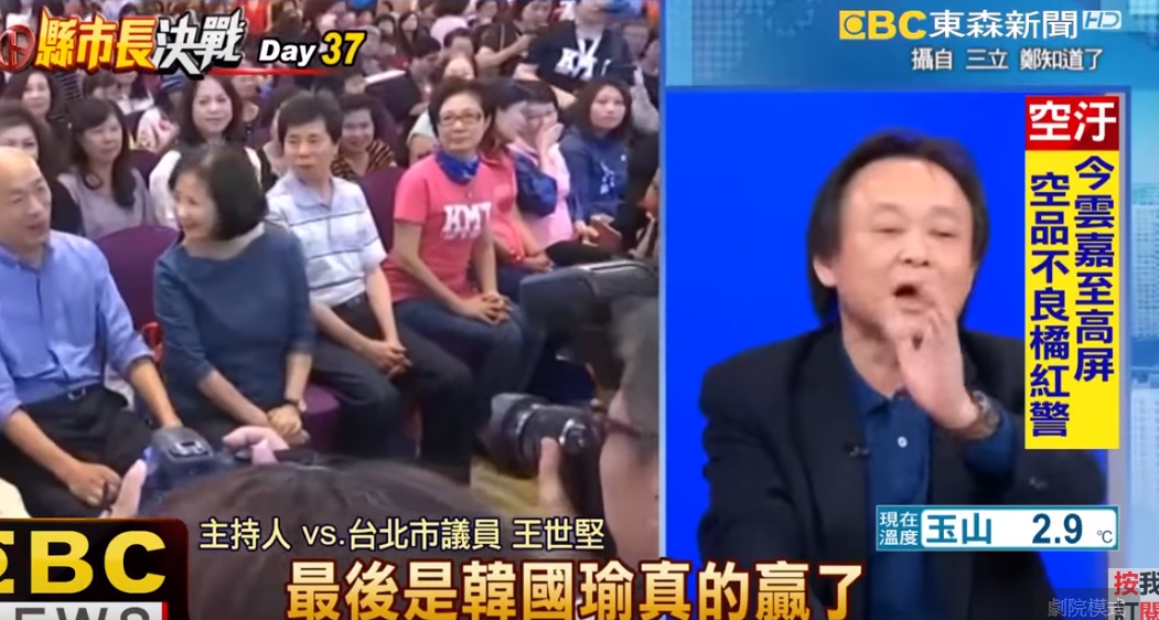 台北市議員王世堅,上節目談高雄市長選舉,當主持人問他,如果最後是韓國瑜贏了,會怎麼樣,王世堅直呼,這是不可能的事情,他說如果韓國瑜贏,這樣自己又要再次去跳海了。