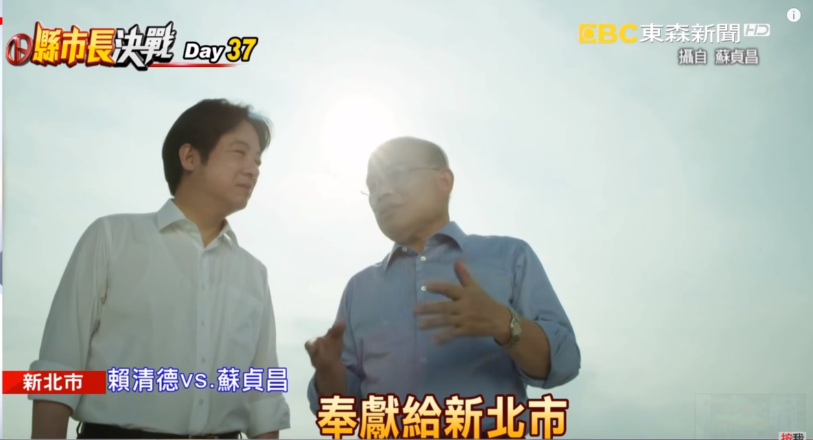 民進黨新北市長參選人蘇貞昌最新的競選廣告,請來行政院長賴清德跨刀演出,拍攝地點還選在賴揆老家,國民黨的侯友宜說,賴清德是蘇貞昌的大咖,自己的大咖就是市民。
