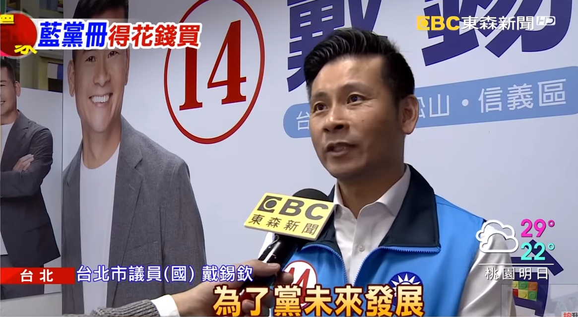 台北市議員戴錫欽:「相較其他黨一般行情來講,的確是高了一點,但是我覺得大家共體時艱,為了黨未來發展。」