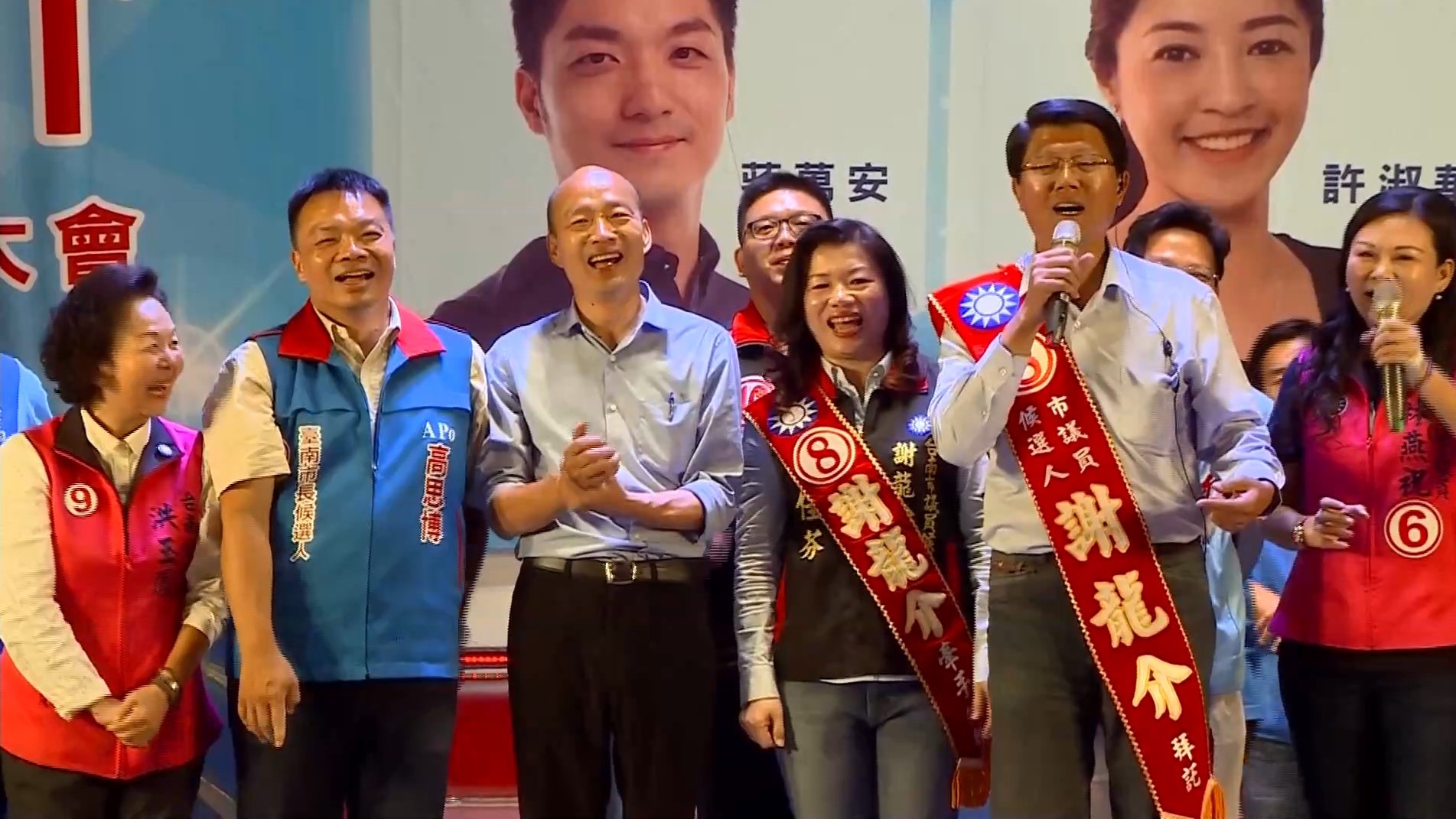 其實,現場陣容強大,除了謝龍介與韓國瑜兩位能言善道的政治明星合體,把大伙逗得眉開眼笑,前總統馬英九、國民黨台南市長候選人高思博、立委許淑華、王育敏、蔣萬安、江啟臣等人也到場站台,人潮擠爆。