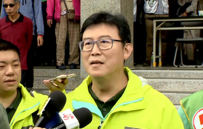 東森新聞記者張良晧:「反空汙遊行持續進行中,可以看到侯友宜現在被環團包圍著,因為他們要表達訴求,而他今天本來是要跟丁守中一起來參加活動,不過丁守中車開到路口的時候,把門打開,發現這邊的環團大部分都是屬於偏綠的人士,因此人就躲到後面的張榮發基金會裡面。」