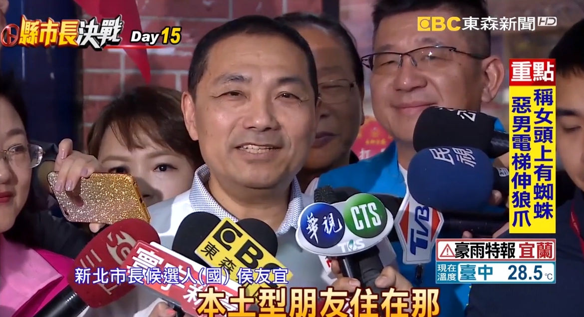 新北市長候選人(國)侯友宜:「非常奇怪,已經要辯論了,為什麼老縣長還抹黑奧步,還夾帶說我不敢辯論。」